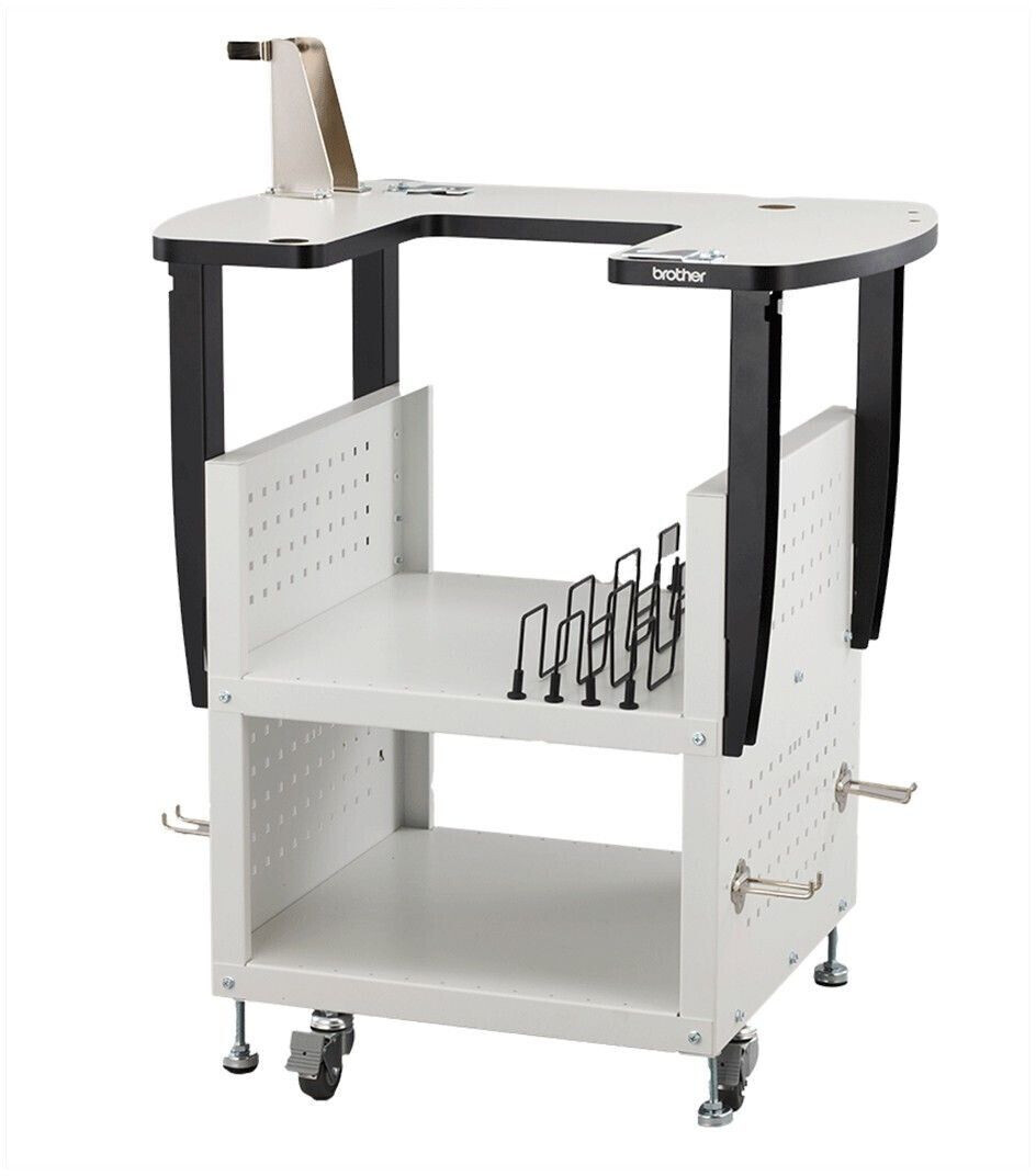Kirjontakoneen työpöytä on suunniteltu Brother PR -tyyppisille koneille. Pöytä on tukeva ja valmistettu metallirakenteesta, mikä varmistaa mahdollisimman vähäisen tärinän koneen työsyklin aikana. Pöydässä on paikat ja ripustimet Brotherin alkuperäistarvikkeiden säilyttämiseen. Työpöydän oikea korkeus takaa ergonomian ja mukavuuden koneen käyttäjälle.